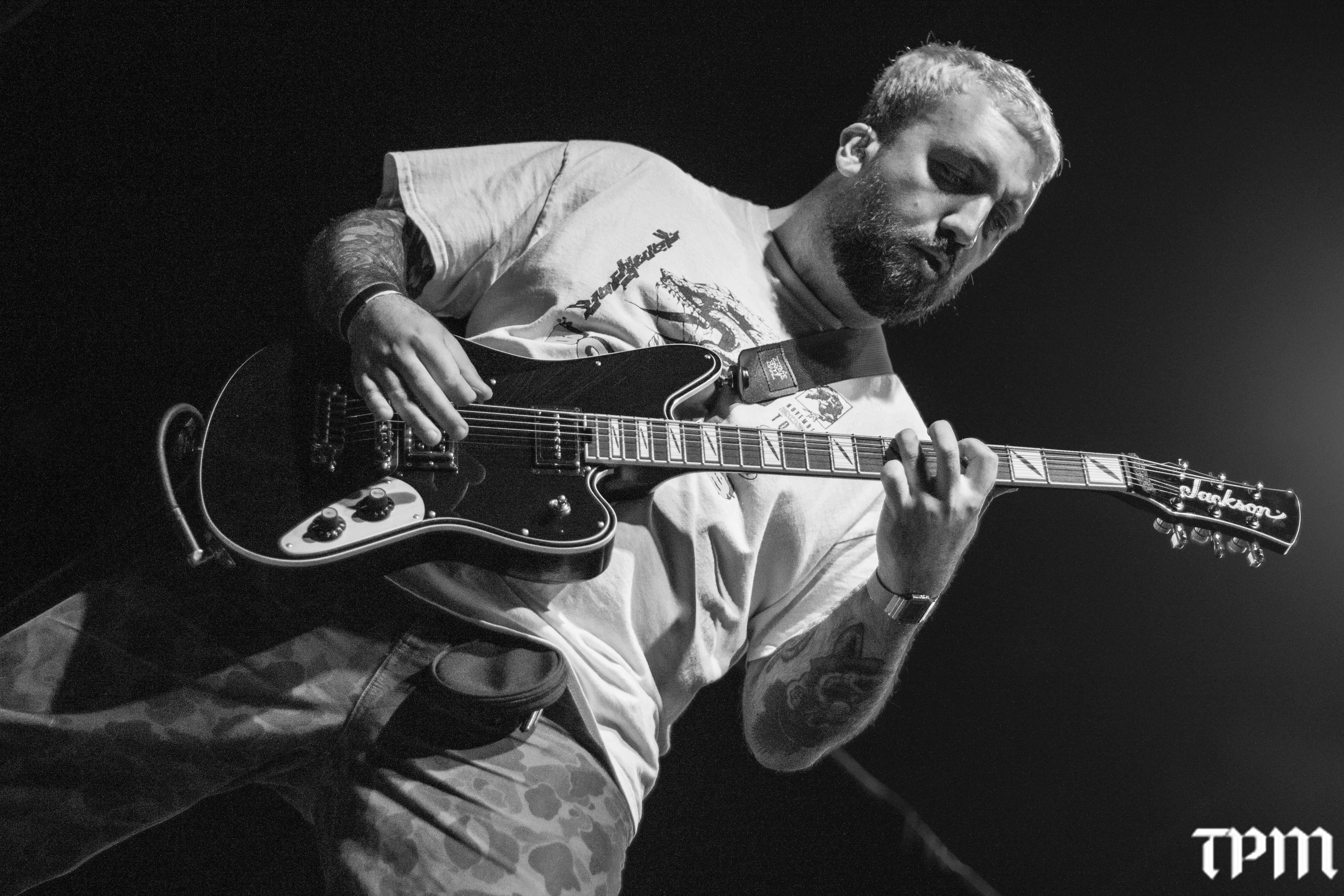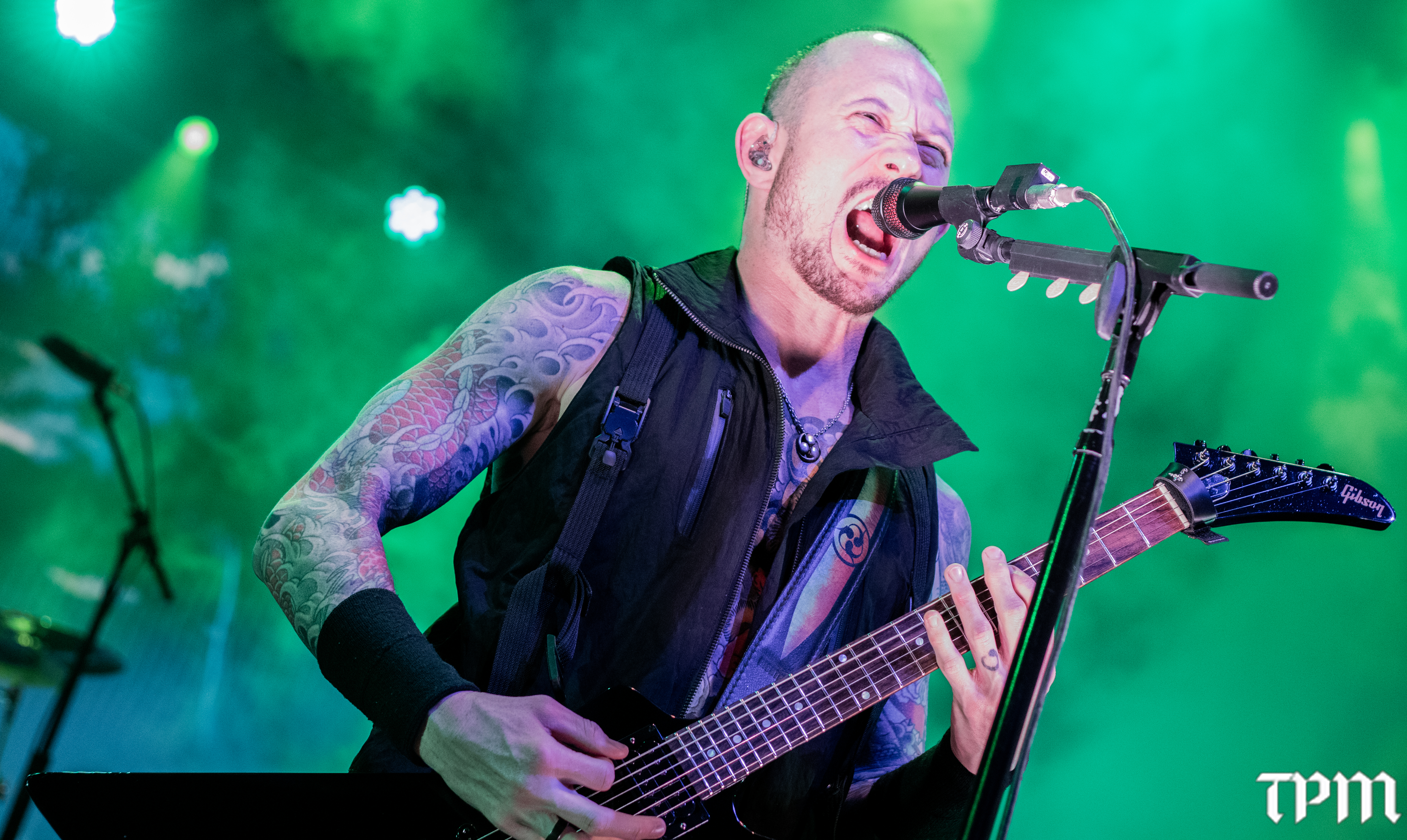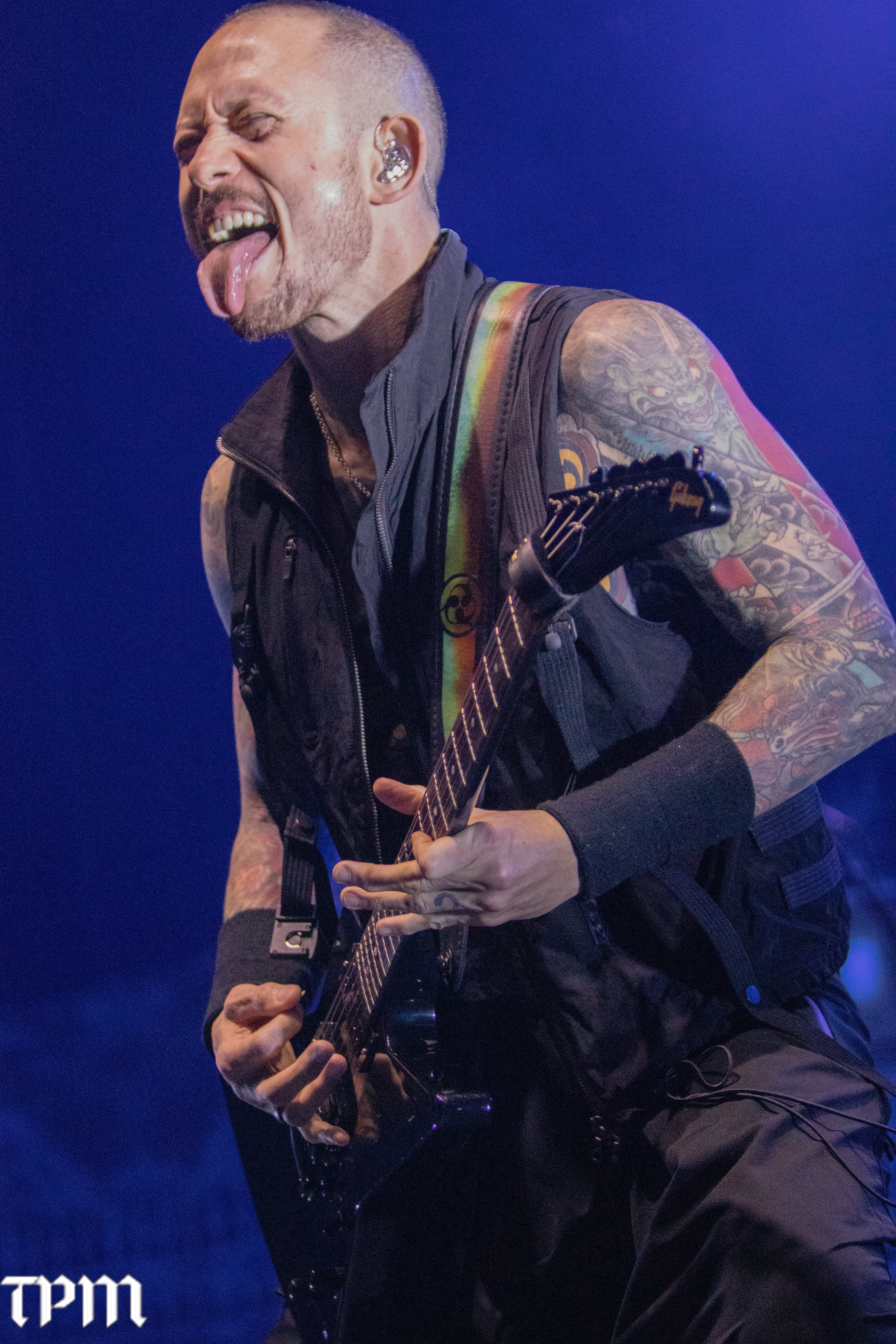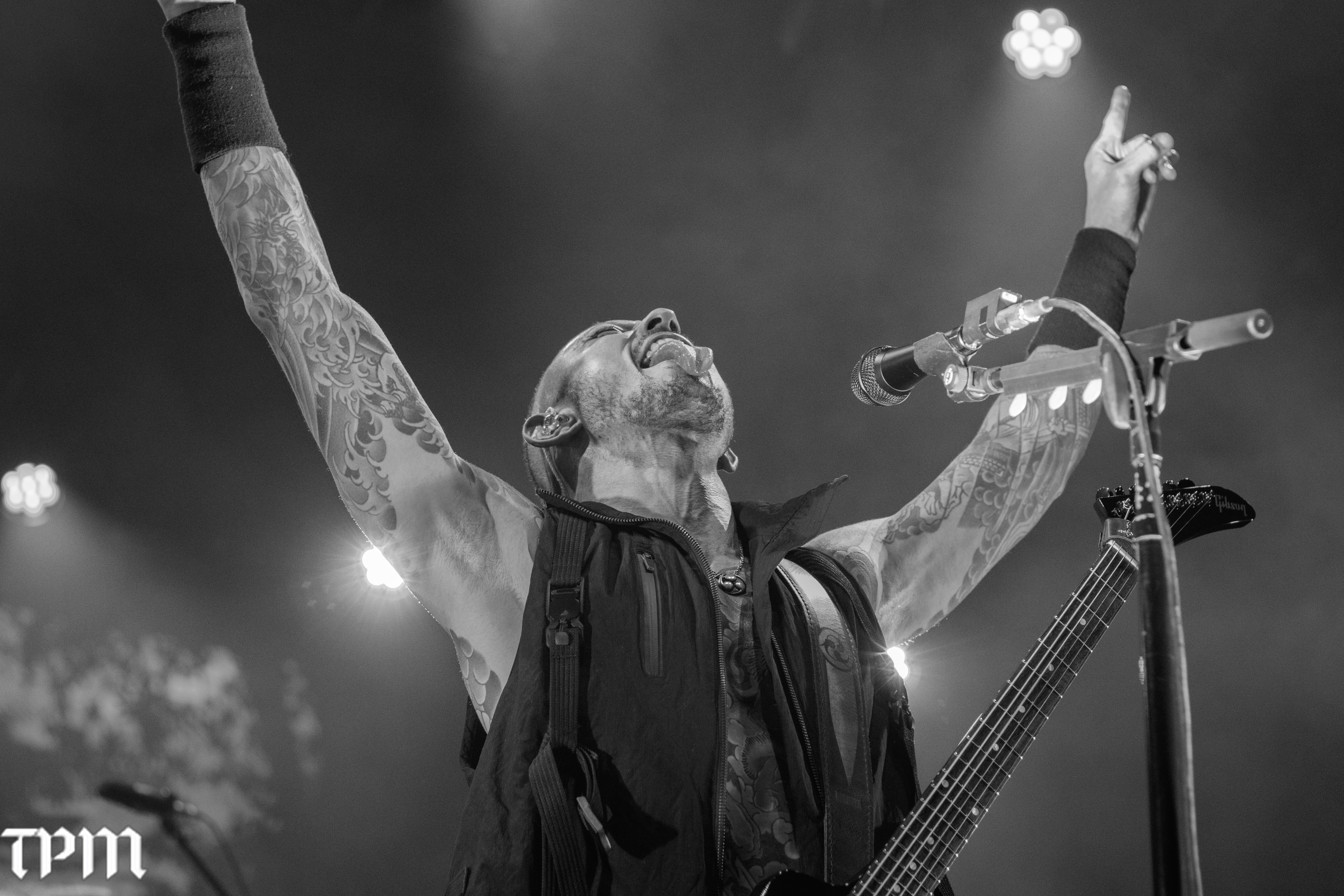 Matt Heafy flexes during Trivium's performance on Nov 14, 2025, at Hard Rock Casino in Gary, Ind. Trivium is on tour with Jinjer and Heriot through the fall. (Damien Dennis/TPM)